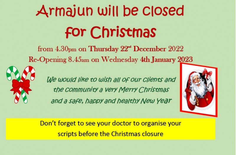 Armajun will be closed for Christmas from 4.30pm on Thursday 22nd December 2022