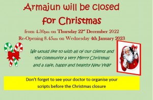 Armajun will be closed for Christmas from 4.30pm on Thursday 22nd December 2022Re-Opening 8.45am on Wednesday 4th January 2023