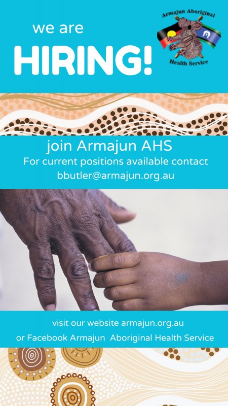 Armajun Aboriginal Health Services is an equal opportunity employer and encourages Aboriginal and Torres Strait Islander people to apply.